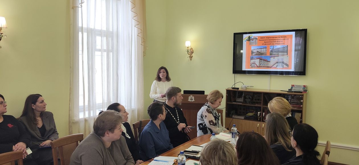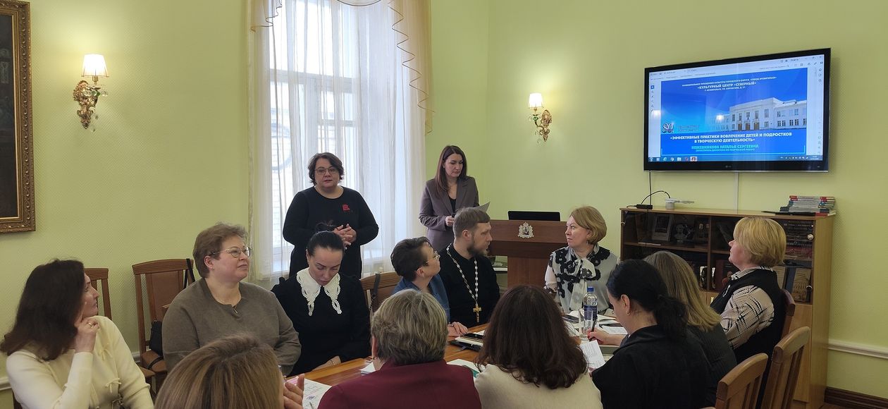 17 марта Ломоносовский дом принимал участников круглого стола «Духовно-нравственное развитие личности ребенка: актуальные проблемы, условия и успешные практики». Елена Владимировна Молчанова, уполномоченный при Губернаторе Архангельской области по правам ребенка поделилась мыслями и тревогами в сфере духовно-нравственного воспитания. О практике и результатах реализации курса «Социокультурные истоки» рассказали педагоги Пинежья, где эта работа ведётся уже 10 лет и охватывает семьи с детьми, начиная с дошкольного возраста. Как сохранить и передать семейные традиции? Как детей и их родителей приобщить к духовно-нравственным ценностям? Ответы на эти вопросы звучали за круглым столом от педагогов, работников культуры, священнослужителя.